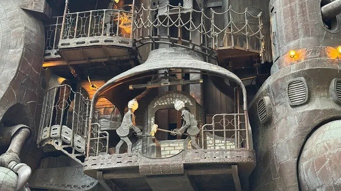 NIPPON TV Big Clock is a giant automaton clock located at the Nippon TV headquarters. Designed by Hayao Miyazaki with a steampunk look, it is a must-see when it moves at set times.
